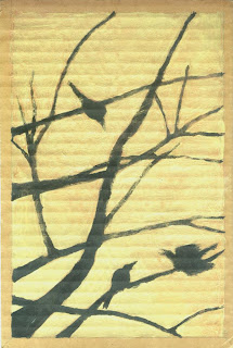 Toni Youngblood, Crows in Tree Blue Evening, Mixed media on paper, Toni Youngblood 2001 © - $850 framed