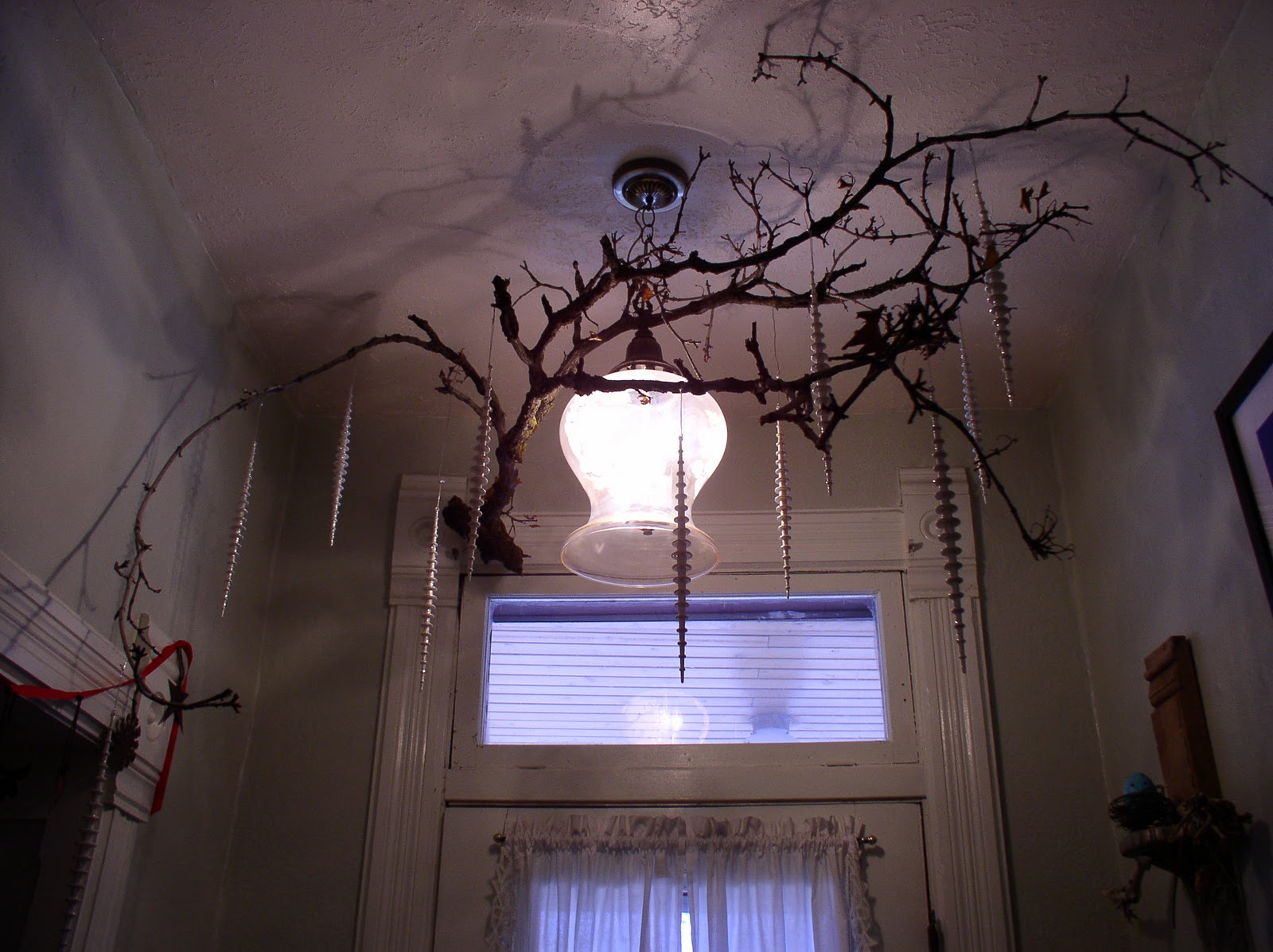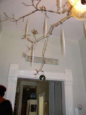 The house is kind of a mess with furniture jammed in everywhere---waiting for the day it can be settled in the new/old back room. I've decorated a bit for the holidays . . . the entry hall and the front porch.