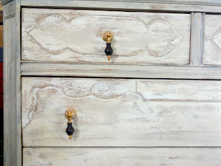 Lovelingly reconditioned antique dresser ~ (Yes, it has six knobs, this was an in-progress snapshot.)