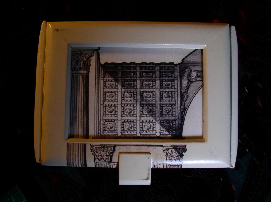 Above: Detail of top center of the antique frame.