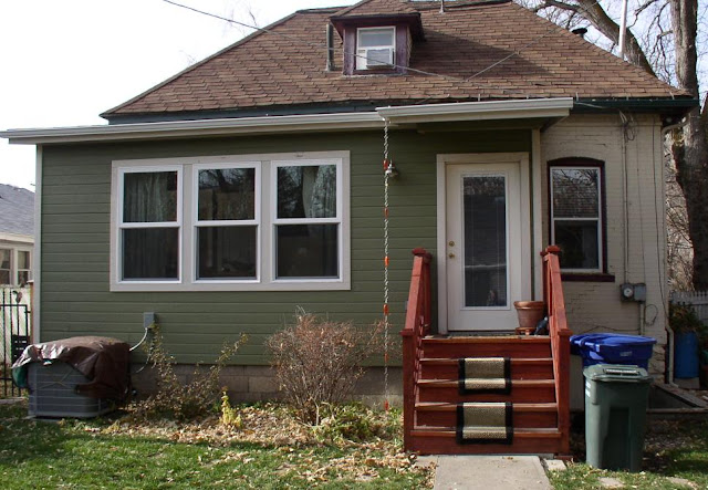 Above:  The section of new gutter across the back of the addition, with rain chain hanging to the left of the door and steps.  Next Spring, I will be developing more landscaping around the addition.  Hoping that we are pretty well set now for winter's arrival---hmmm, where's the snow shovel?  Now...on to the holidays!